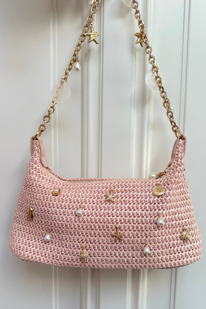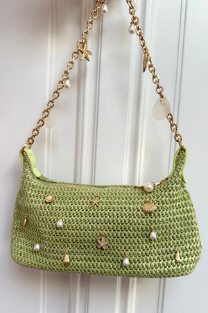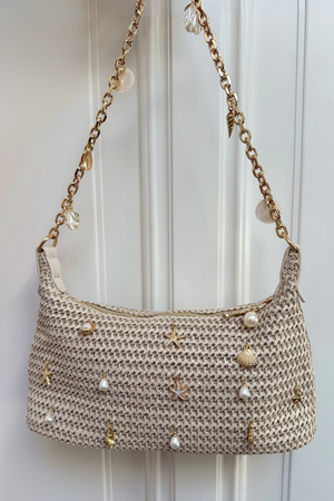 De hand geweven tasjes zijn versierd met schelpjes, parels en charms – elk stuk is uniek en nooit precies hetzelfde. Binnenin zijn ze gevoerd en voorzien van een handig vakje, zodat ze ook praktisch zijn.