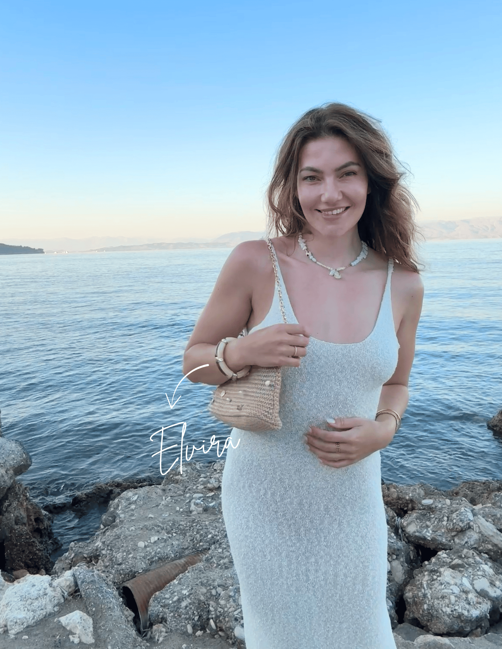 Ik begon met het maken van mijn eigen handgemaakte tasjes, geweven en versierd met schelpjes, parels en charms. Mijn allereerste tasje verkocht ik spontaan tijdens een vakantie in Corfu, toen een vrouw me aansprak en vroeg waar ik het vandaan had. Toen ze hoorde dat ik het zelf had gemaakt, kocht ze het meteen. Dat moment gaf me het vertrouwen om van mijn passie een echt merk te maken.
